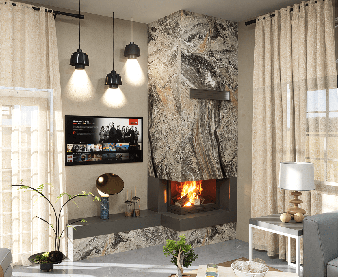 - L tipi şömine modelini istediğiniz şekilde kaplama tercih edebilirsiniz.